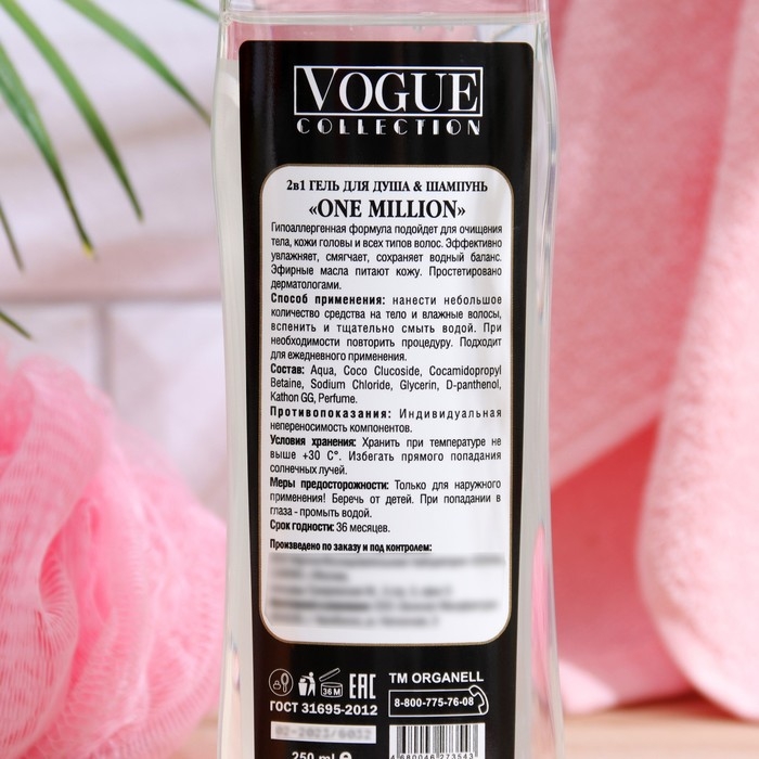 Гиппоалергенная формула геля для душа "One million" подойдет для всех типов кожи. Гель эффективно увлажняет и дезодорирует кожу, сохраняя водный баланс. В состав входят эфирные масла, которые смягчают, увлажняют и питают кожу. Протестировано дерматологами.