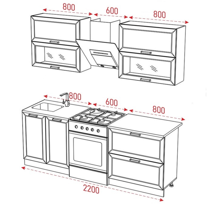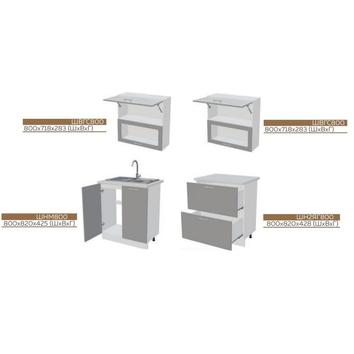 Кухонная мойка, стеновая панель, решётка для посудосушителя, цоколь, приобретаются отдельно.