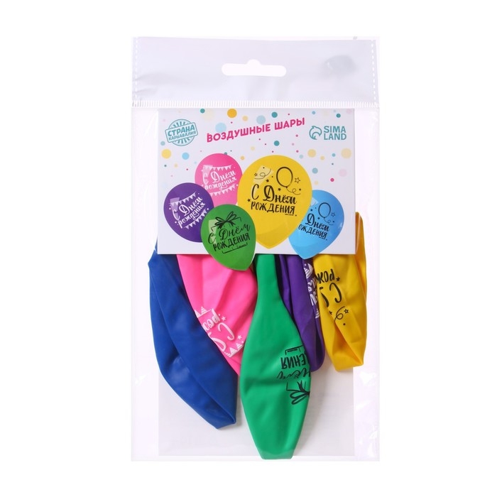 Воздушный шар латексный 12" «С Днём Рождения», яркий праздник, 5 шт.