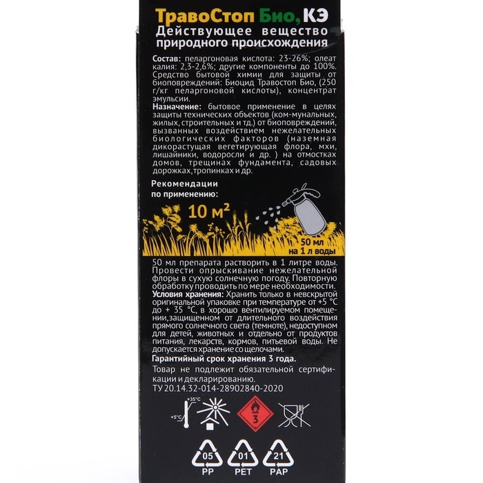 Средство от сорняков Биоцид ТравоСтоп Био КЭ – это надежный помощник в борьбе за идеальный участок без нежелательных растений. Приобретайте препарат уже сегодня и наслаждайтесь красивым и ухоженным садом или огородом!