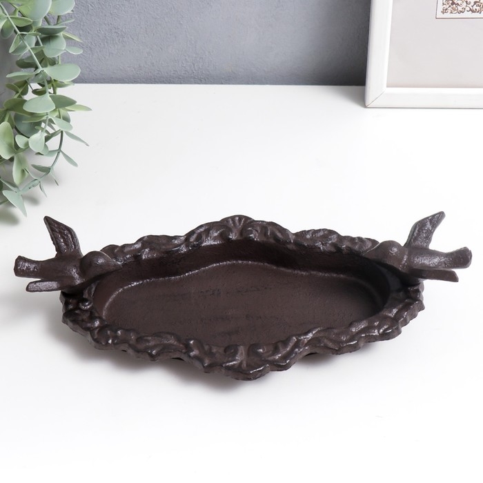 Сувенир чугун подставка "Птицы на блюде" 5х13х25 см