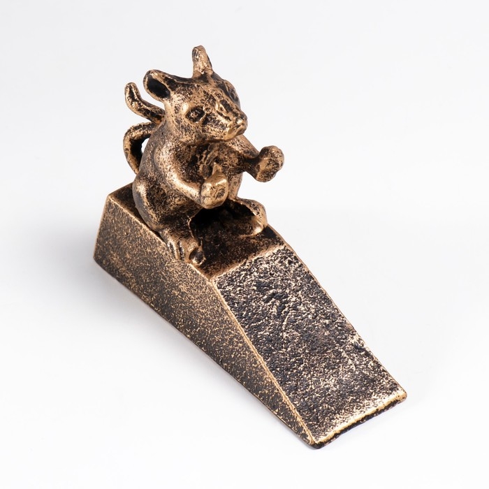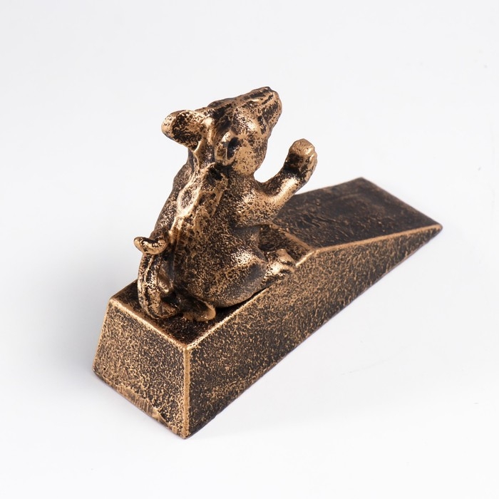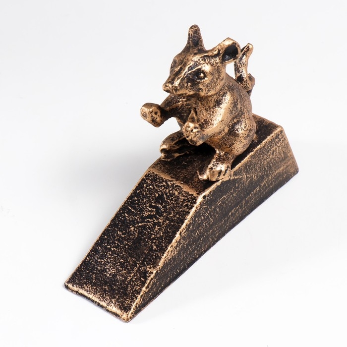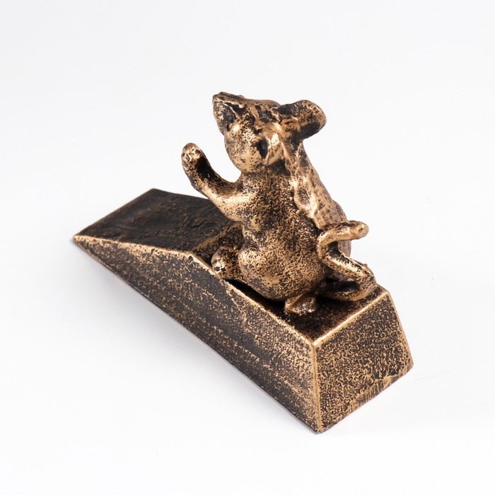 Стоппер дверной чугун "Мышка" золотая патина 11х4х14 см