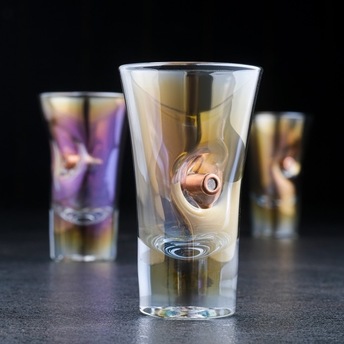 Стопки "Непробиваемые. Радужное напыление", 3 шт., с пулей