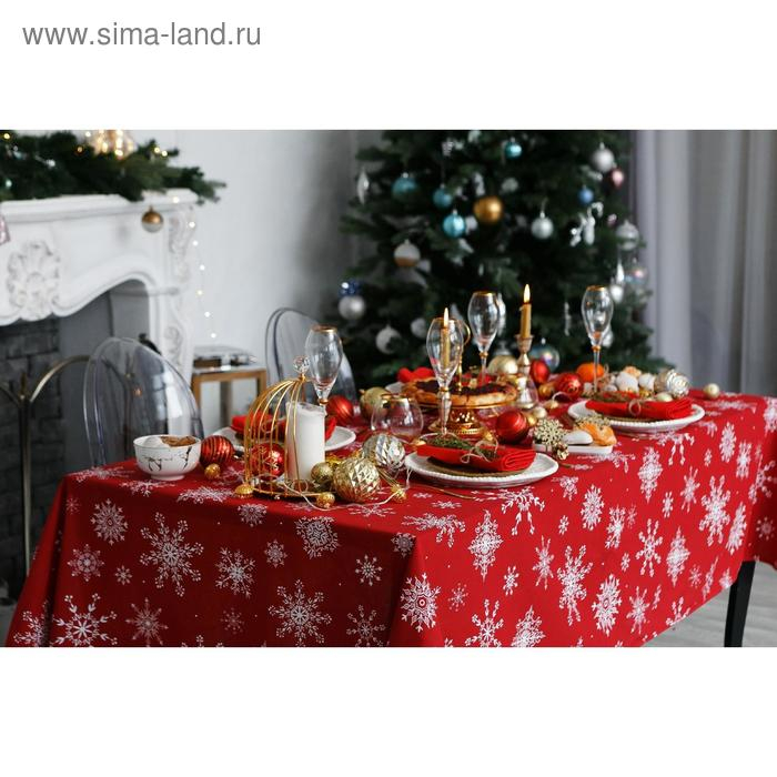 Скатерть "Доляна" Белые снежинки 250х149+/- 3см, 100% хлопок, 164 г/м2