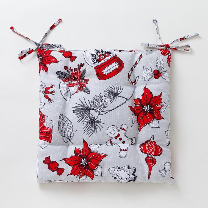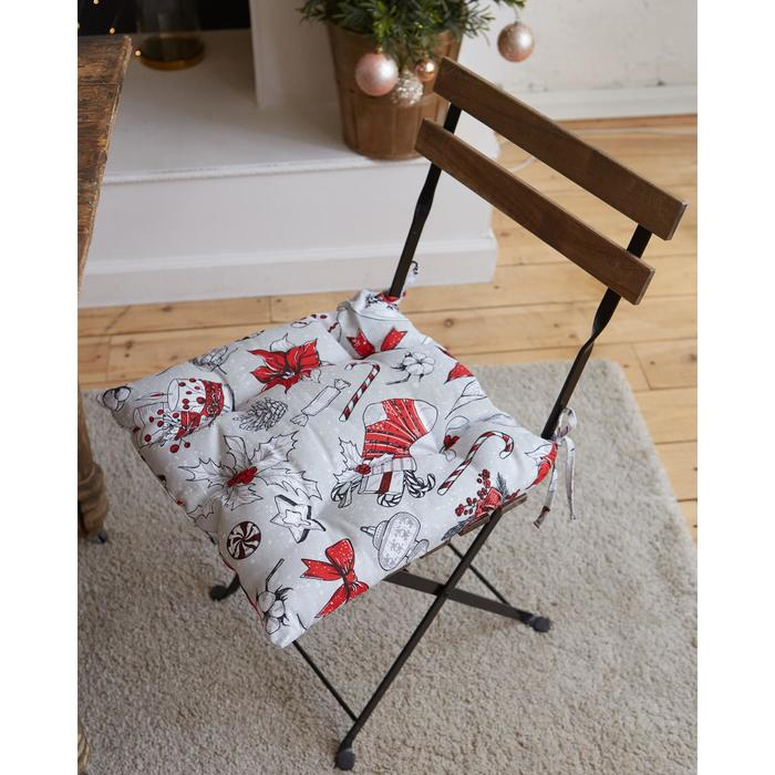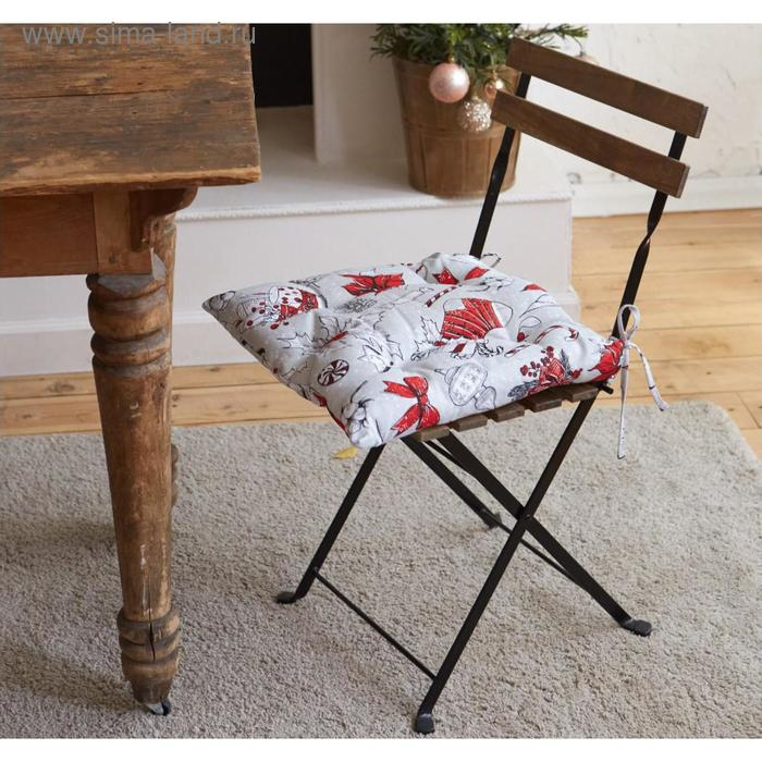 Сидушка на стул "Доляна" Новогоднее настроение 42х42х5 см, 100% хлопок, 164 г/м2