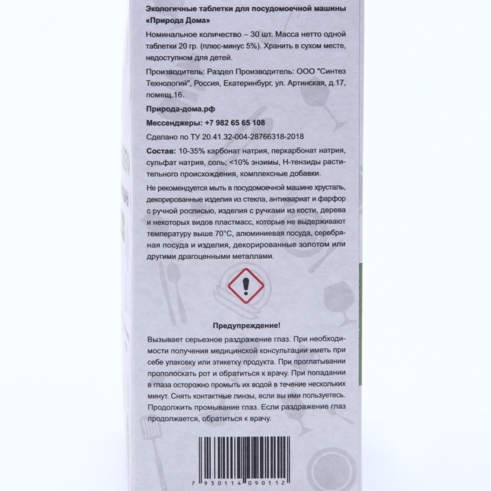 Эко таблетки для посудомоечной машины «Природа Дома» великолепно отмывают посуду до блеска, не оставляя разводов и налета. Полностью смываются с посуды, без запаха. Не содержать фосфаты, синтетические ПАВ. Подходят для мытья детской посуды, гипоаллергенные. Защищают посудомоечную машину от накипи, могут использоваться в домах с септиками.