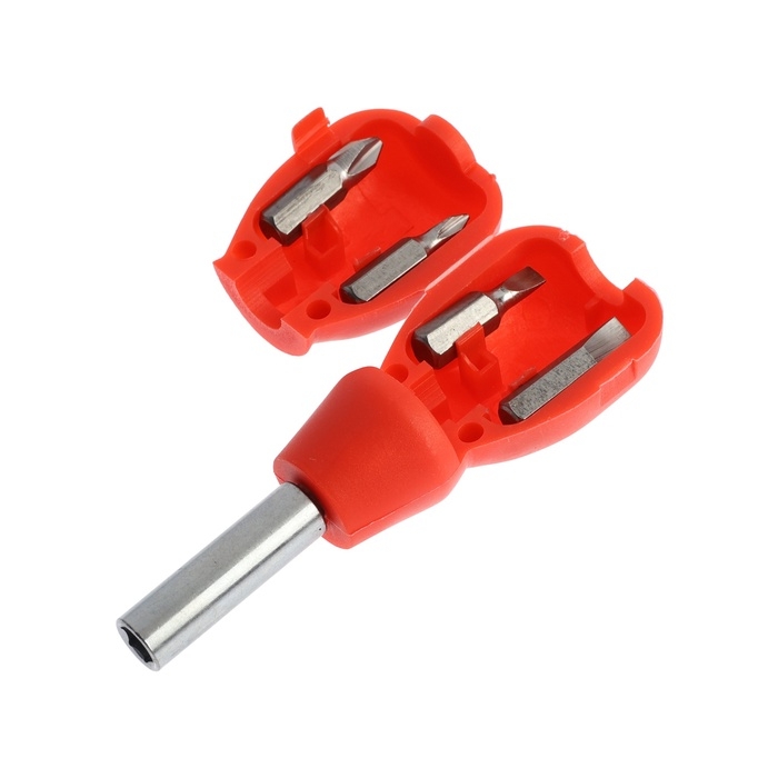 В комплект входит: держатель для бит, корпус-кейс и биты четырёх видов.