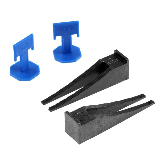 Система выравнивания плитки ЛОМ, зажим 2.5 мм + клин (40+40 шт.), пакет