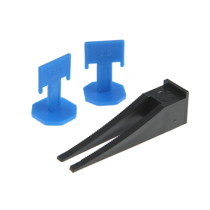 Система выравнивания плитки ЛОМ, 1 л, Зажим 2.5 мм + Клин (50 шт./50 шт.), ведро