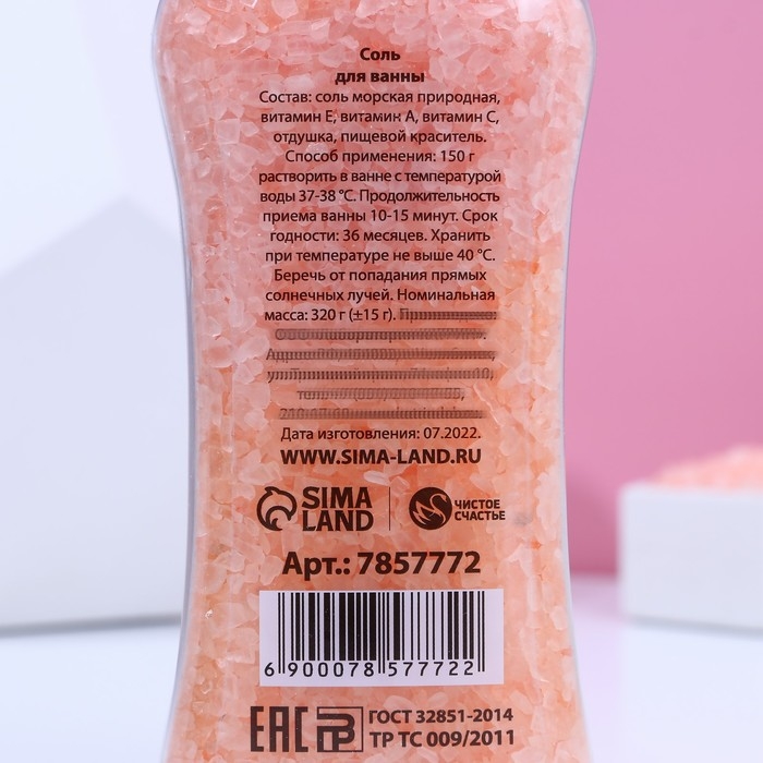 Соль для ванны «Счастья!», 320 г, аромат апельсинового фреша, ЧИСТОЕ СЧАСТЬЕ