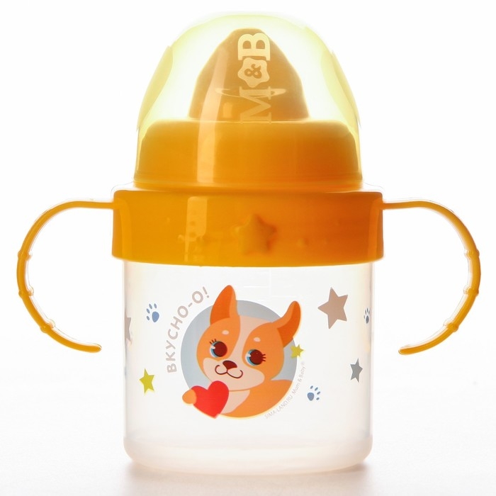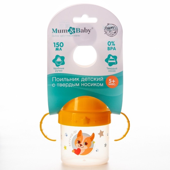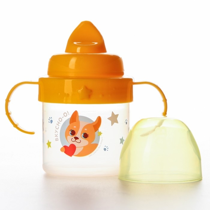 Поильник детский с твёрдым носиком «Собачка Лу», 140 мл., с ручками, цвет желтый