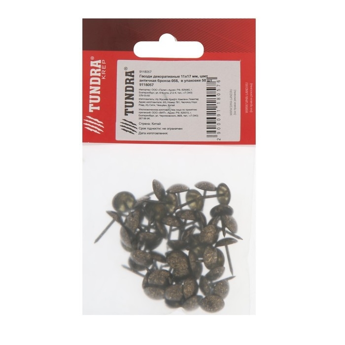 Гвозди ТУНДРА, декоративные, обивочные, 11х17 мм, античная бронза, фасовка 50 шт