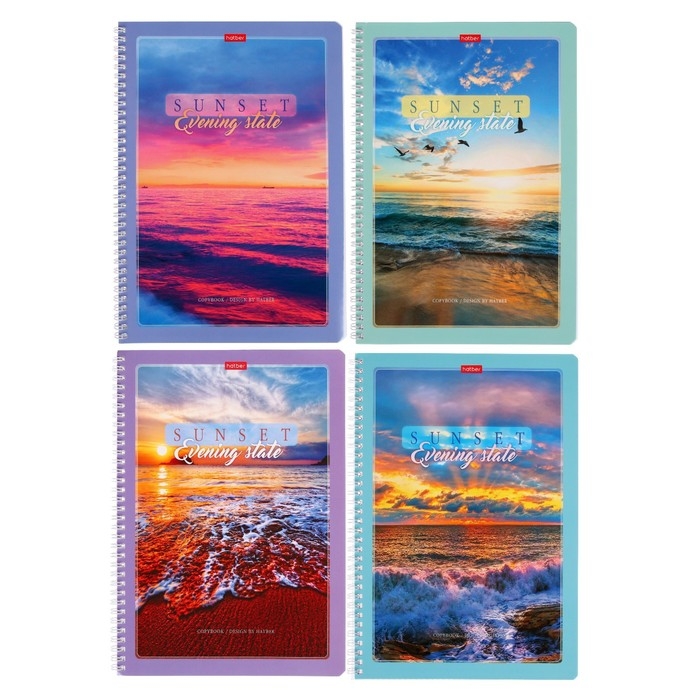 Тетрадь А4, 80 листов, в клетку на гребне "Закаты", обложка мелованный картон, блок офсет, МИКС