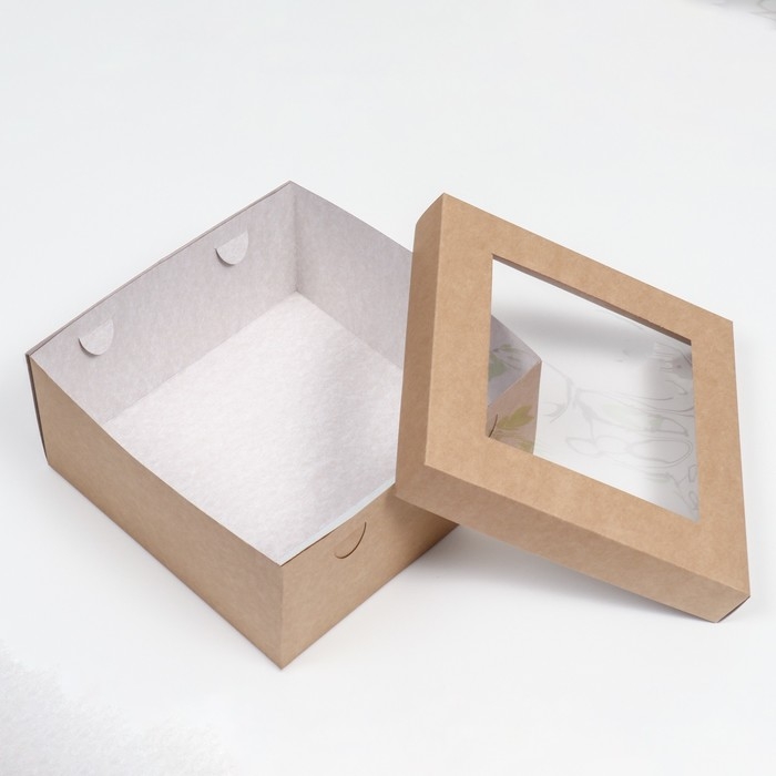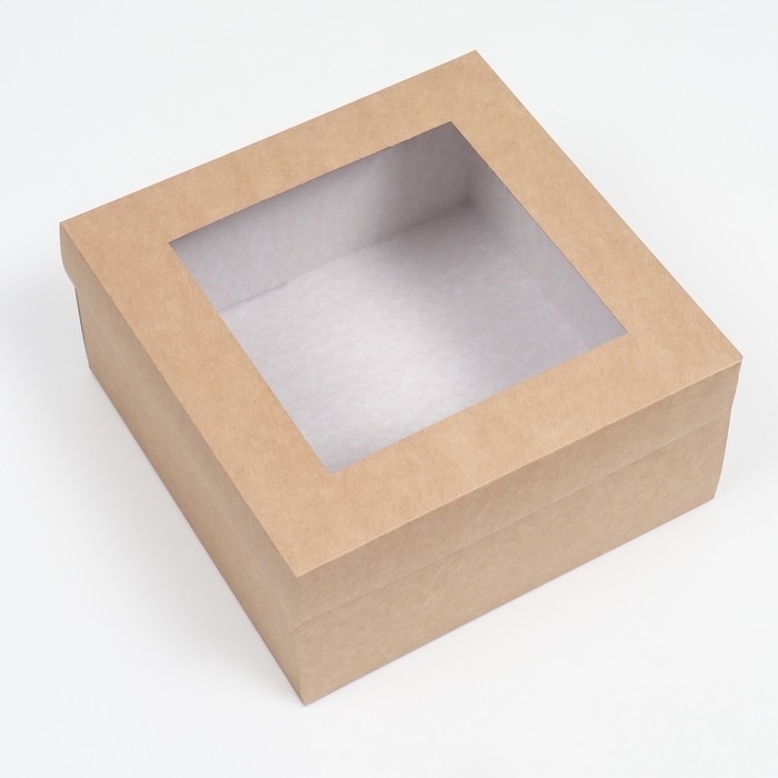 Коробка складная, крышка-дно,с окном, крафт, 25 х 25 х 12 см