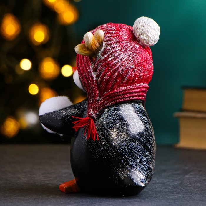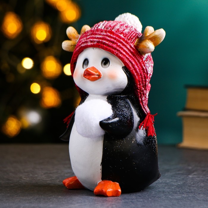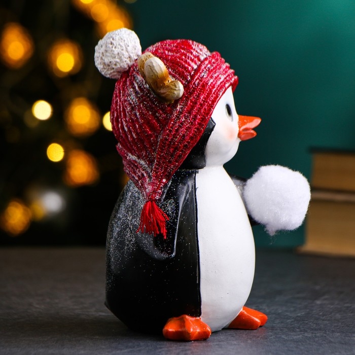 Новогодняя фигура "Пингвиненок со снежком" в левом крыле, 14х11,5х17см