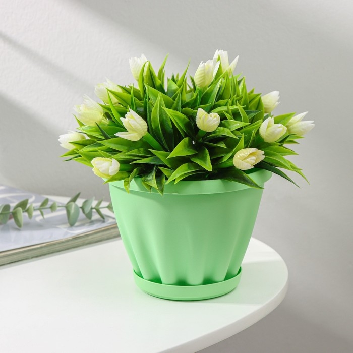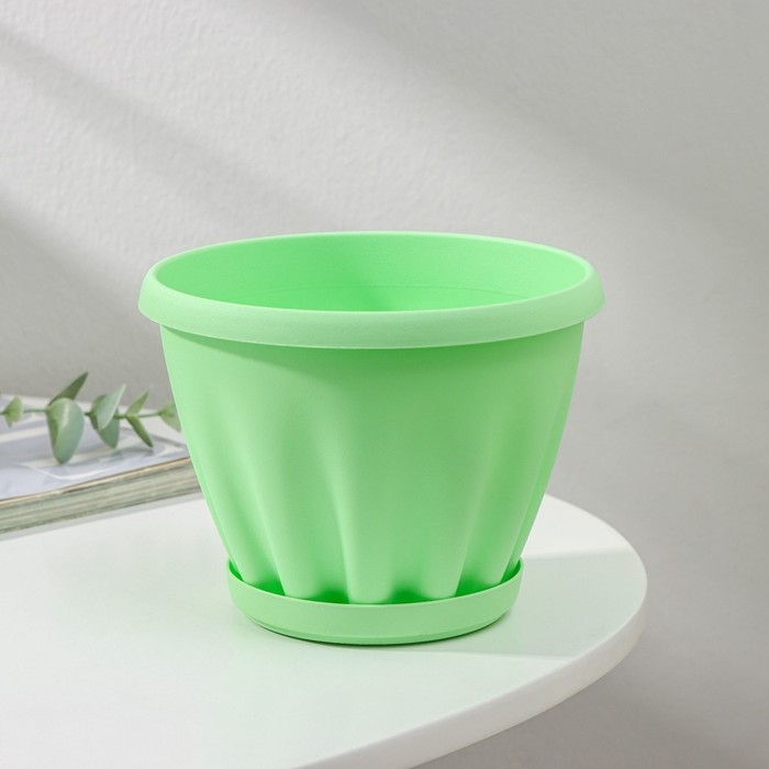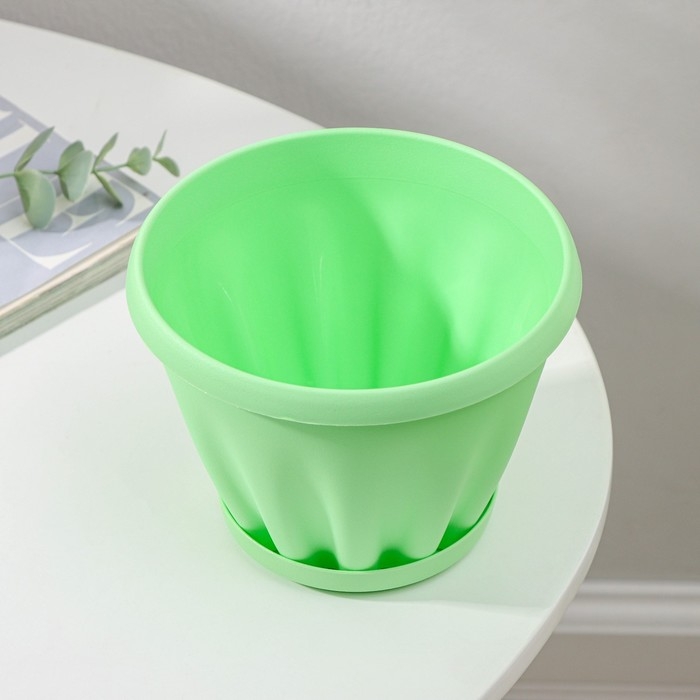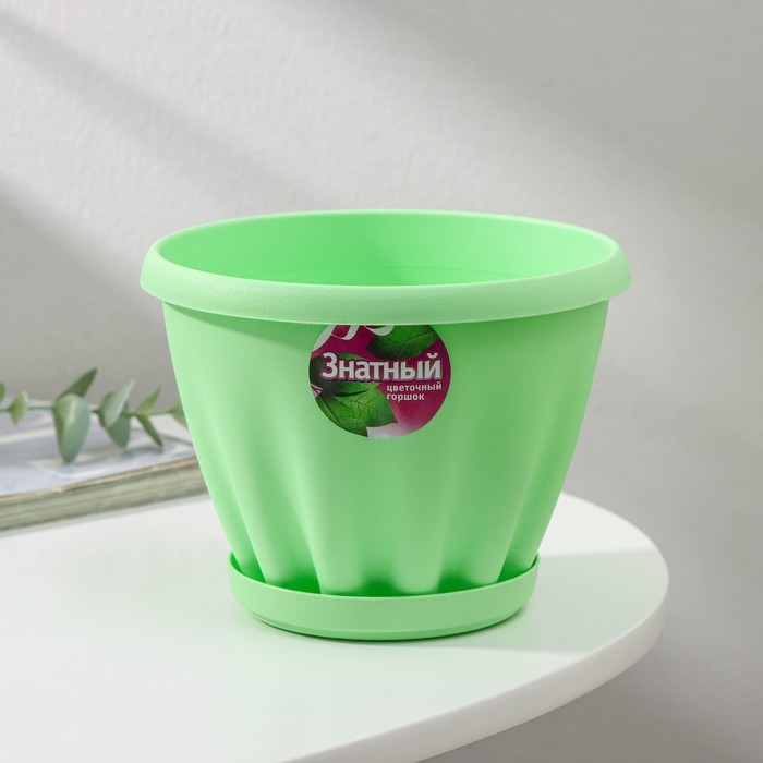 Горшок для цветов с поддоном «Знатный», 1 л, d=14 см, цвет зелёный