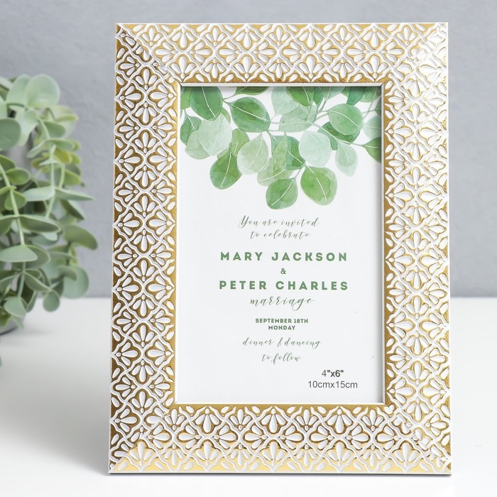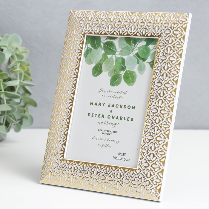 Фоторамка пластик 10х15 см "Золотые лепестки ромашки" белая 19,5х14,5 см