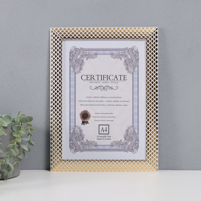 Фоторамка пластик формат А4 "Золотые чешуйки" белая 34,2х25,5 см