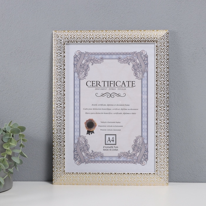 Фоторамка пластик формат А4 "Золотые лепестки ромашки" белая 34,2х25,5 см