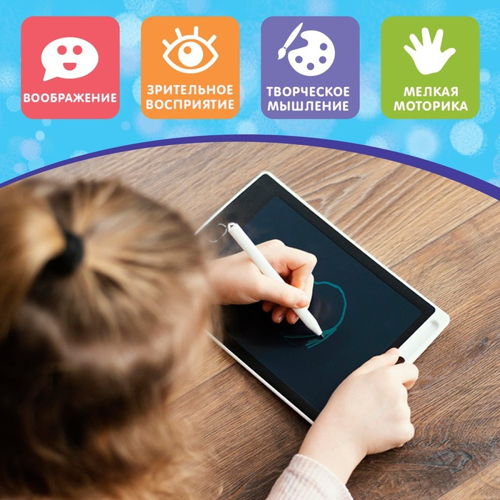 - На планшете можно записывать буквы и цифры, слова и арифметические примеры, поэтому он подходит для обучающих занятий.