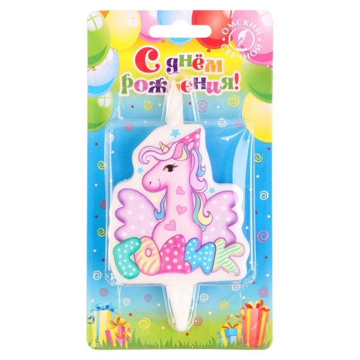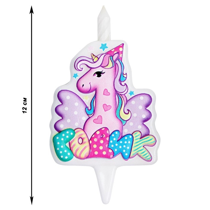 Свеча в торт "Мне годик!" с единорогом, 9,7 см, 12 мин, 40 г