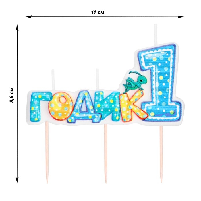 Свеча в торт на шпажке для мальчиков "Мне годик", 7,7 см, 12 мин, 65 г