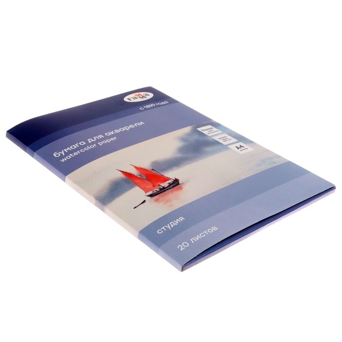 Папка для акварели ГАММА серии «Студия» формата А4 (205*296 мм) плотностью 200 г/м2, средней зернистости, марки А. В папке 20 листов, изготовленных из 100% целлюлозы на заводе «Гознак» без использования оптических отбеливателей. Бумага обладает естественным белым цветом, идеально подходит для водных техник, хорошо впитывает влагу, не деформируется от воздействия воды. Благодаря среднезернистой фактуре и плотности она отлично подходит под многослойные сложные работы карандашами, а также для смешанных техник. Папка представлена в картонной обложке.