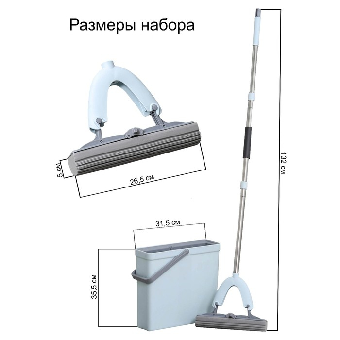 Швабра с отжимом и ведро Raccoon: швабра 32×5×132 см, ведро для полоскания и отжима 14 л
