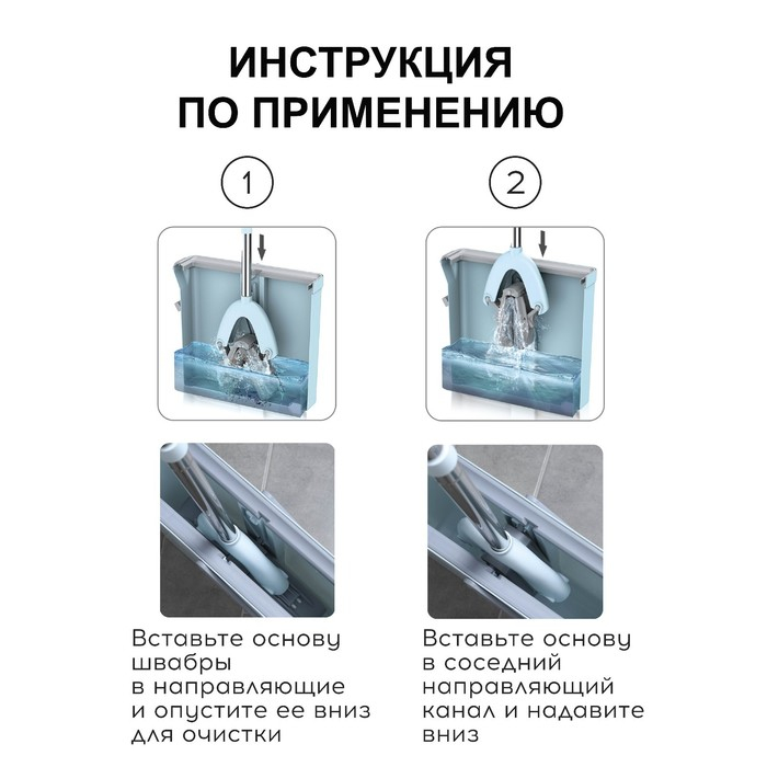 Швабра с отжимом и ведром Raccoon: ведро с подачей воды 19,5×31 см, швабра 23×135 см, насадка из микрофибры d=23 см