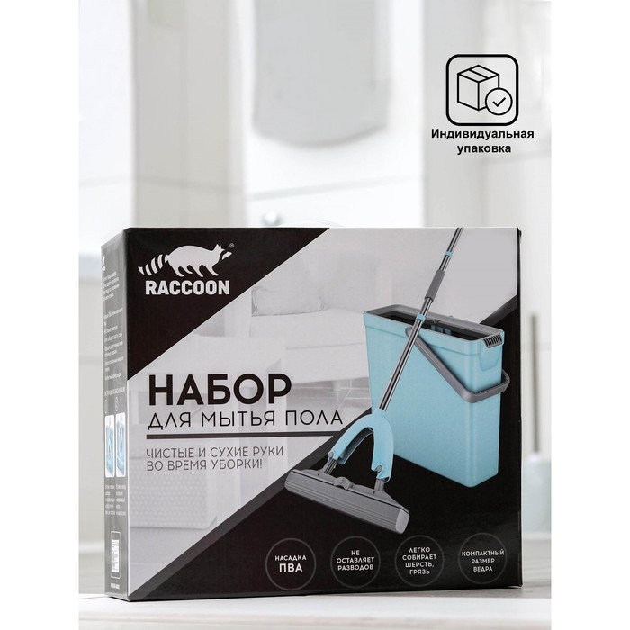 Швабра с отжимом и ведро Raccoon: швабра ПВА, ведро для полоскания с вертикальным отжимом
