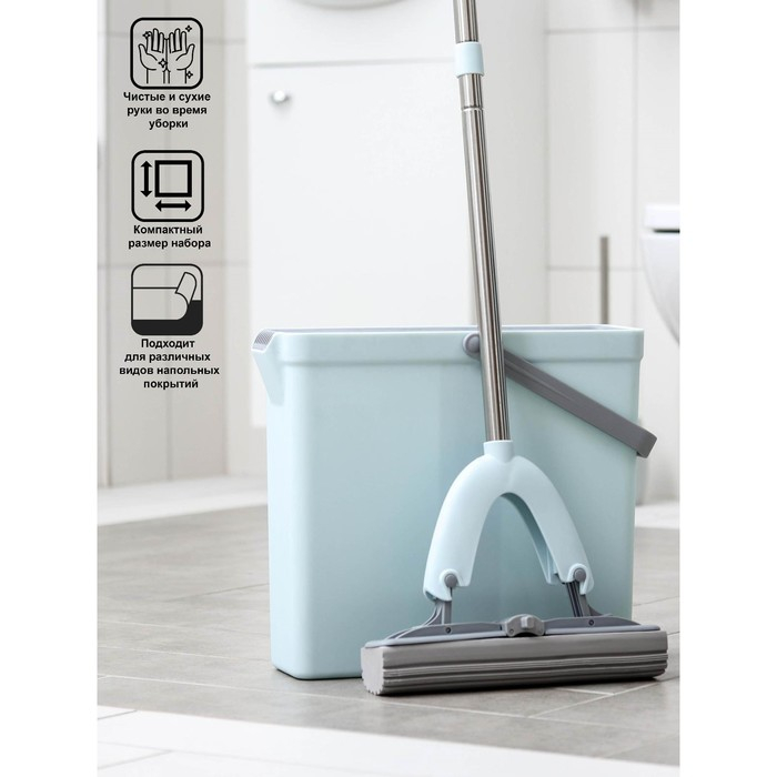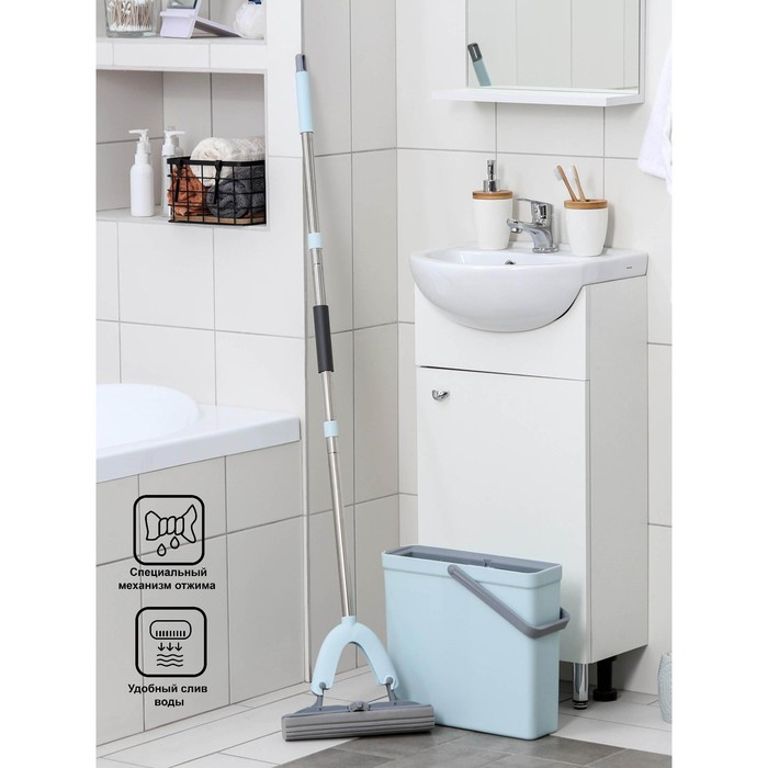 Швабра с отжимом и ведром Raccoon «Компакт»: ведро 17×12,5×34 см, 5,5 л, швабра с насадкой ПВА 28×4,5×121 см