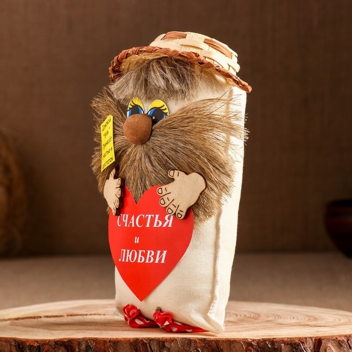Оберег "Домовой полушляпе Счастья и Любви", лён, 20-21 см