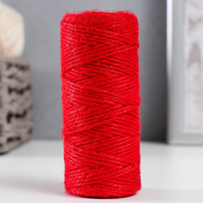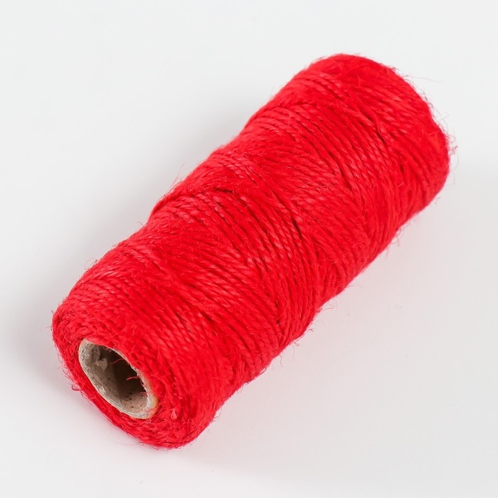 Пряжа 100% джут "Красный" 50 метров 4х4х10 см