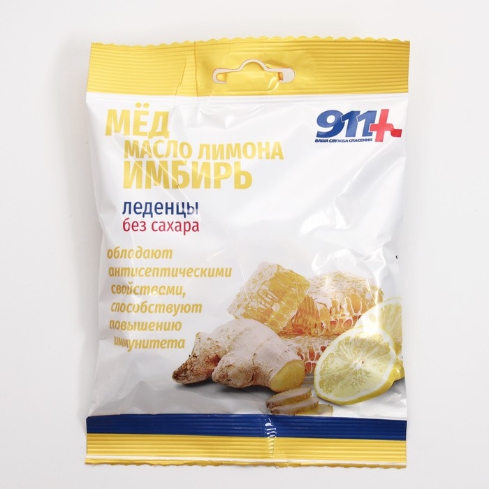 Леденцы "911" без сахара, мед, масло лимона, имбирь обладают антисептическими свойствами способствуют повышению иммунитета.
