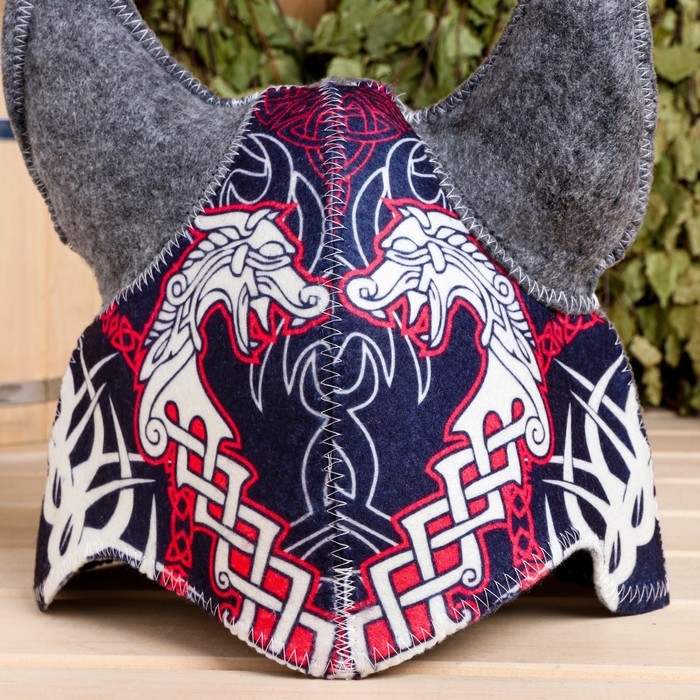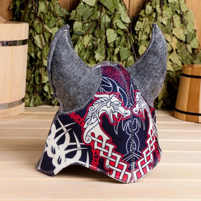 Шапка для бани "Шлем викинга" войлок, комбинированная