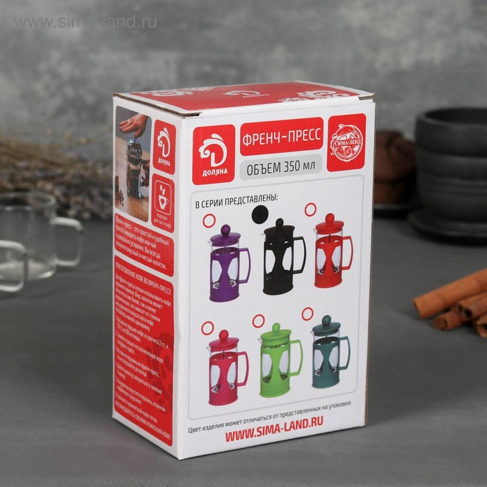 Чайник заварочный френч - пресс Доляна «Комплимент», 350 мл, стекло, цвет фиолетовый