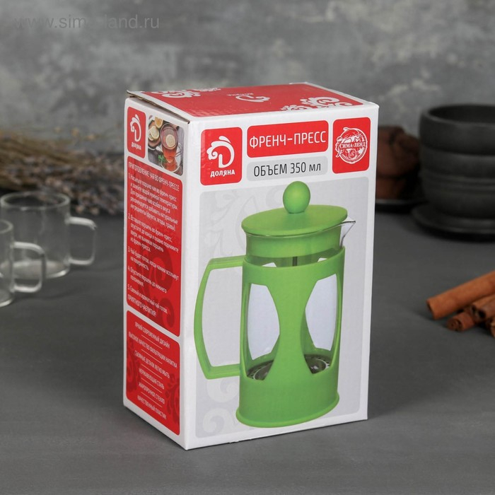 Заварочный чайник френч-пресс Доляна «Гарсон», 350 мл, стекло, зелёный