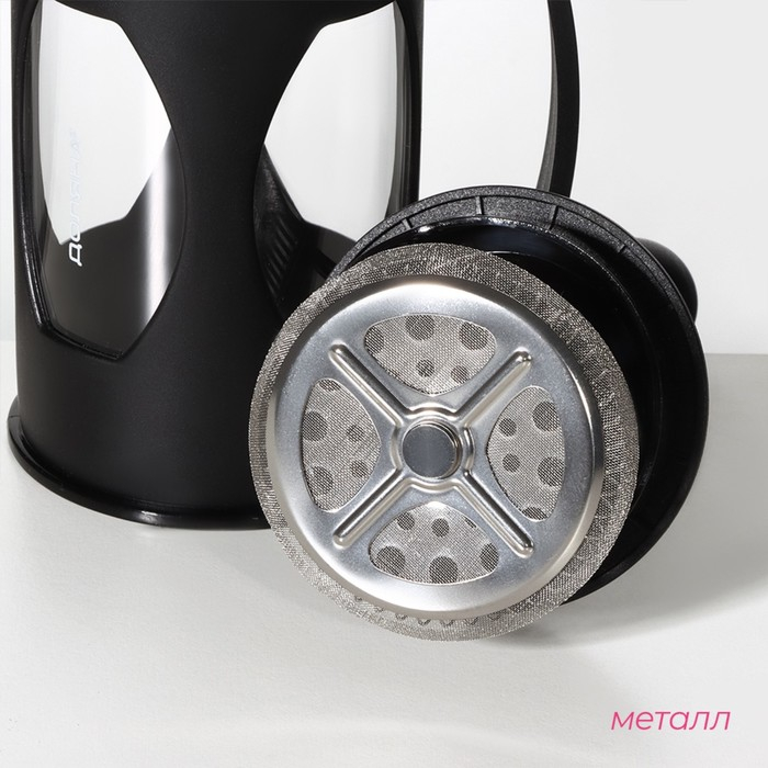 Чайник заварочный френч - пресс Доляна «Оливер», 350 мл, стекло, цвет чёрный