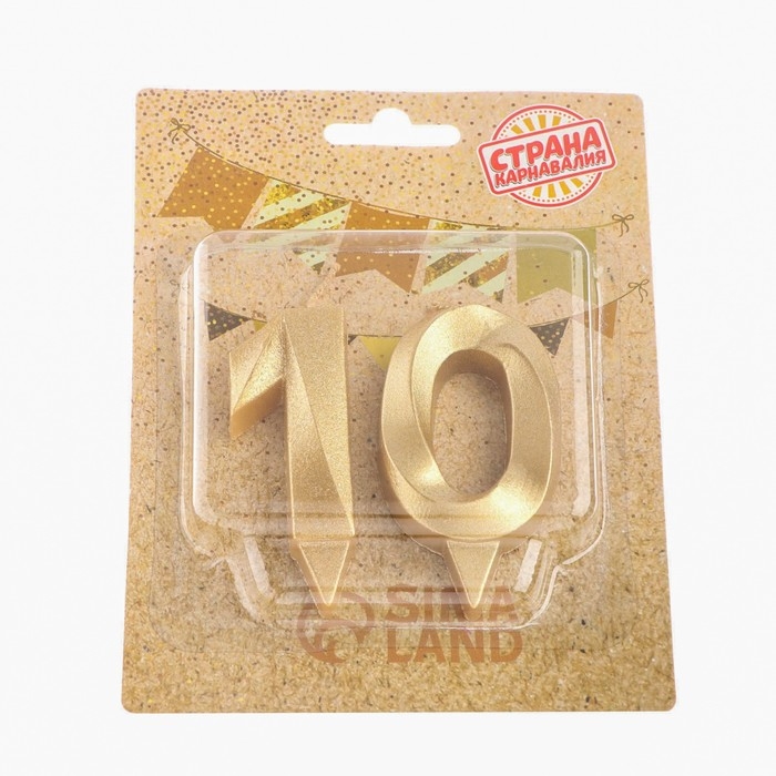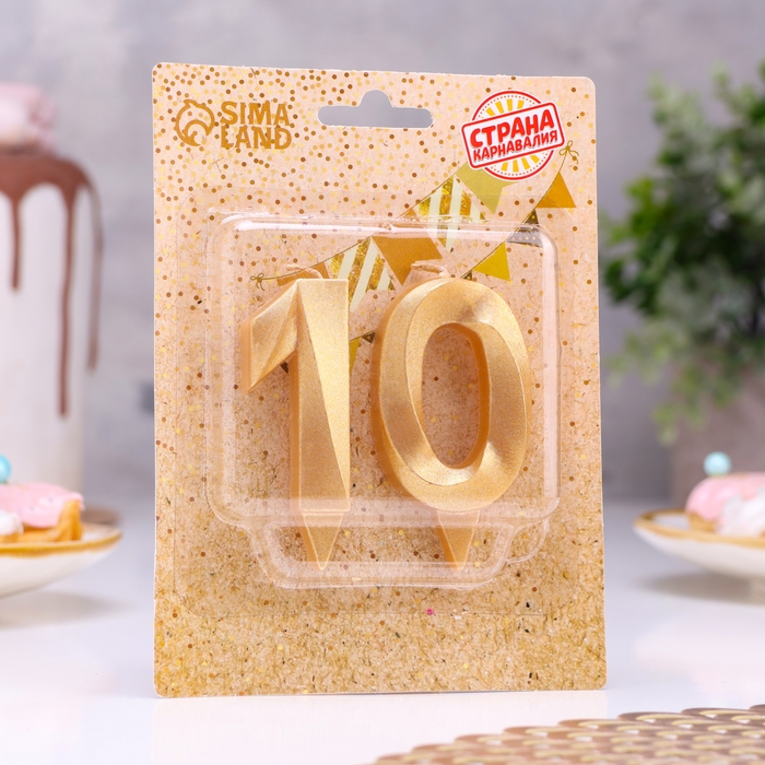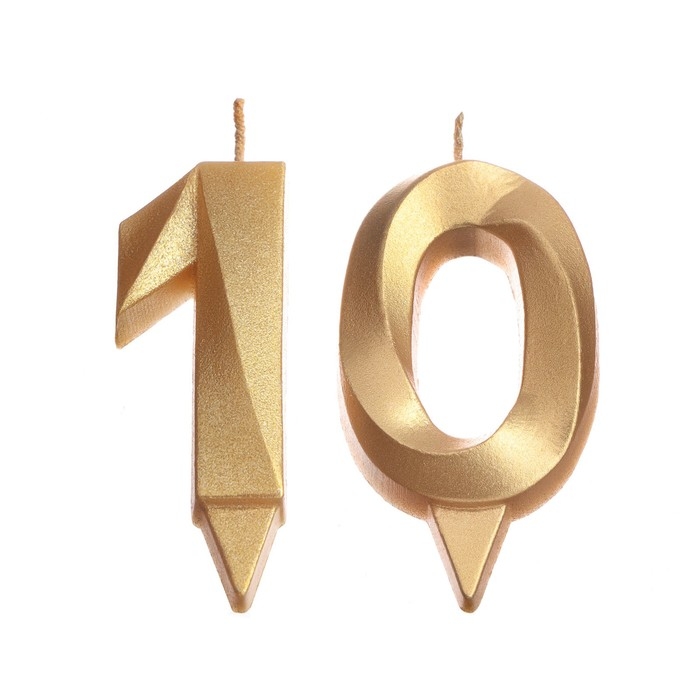 Свеча в торт юбилейная "Грань" (набор 2 в 1), цифра 10, золотой металлик, 6,5 см