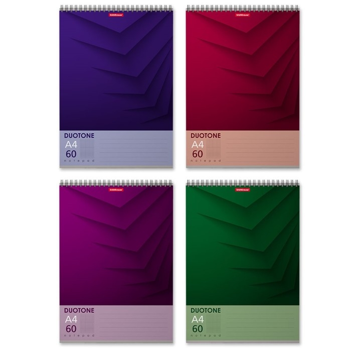 Блокнот на спирали А4, 60 листов, клетка, ErichKrause "Duotone Next", картонная обложка, твёрдая подложка, блок офсет, белизна 100%, МИКС