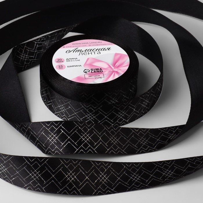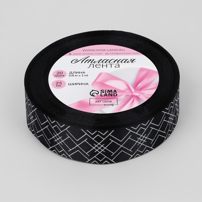 Лента атласная с тиснением «Геометрия», 25 мм × 18 ± 1 м, цвет чёрный/серебряный №039