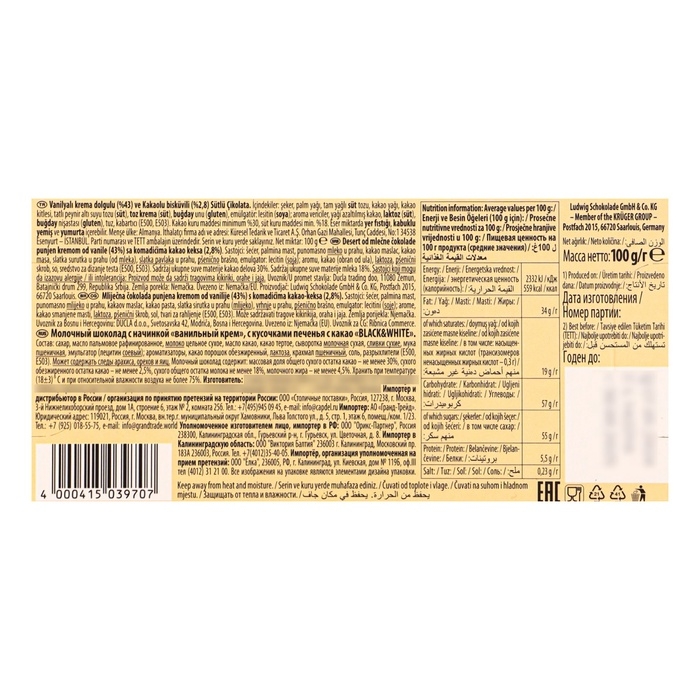 Шоколад Schogetten Black&White, 100 г