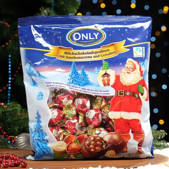 Конфеты из молочного шоколада с орехово-кремовой начинкой и хлопьями, 400 г