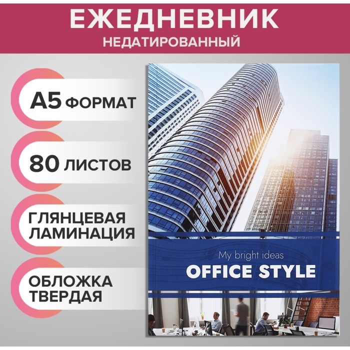 Ежедневник недатированный А5, 80 листов, твёрдая обложка, глянцевая ламинация, "ОФИС. Коллаж", блок офсет
