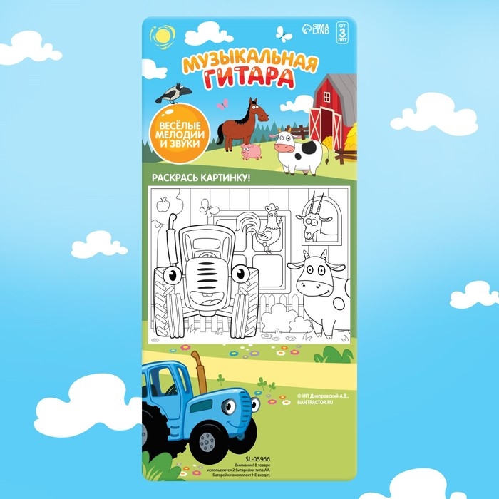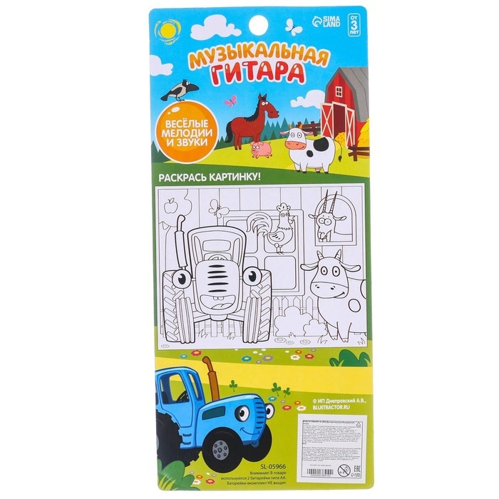 Музыкальная гитара «Синий трактор», звук, свет, цвет синий