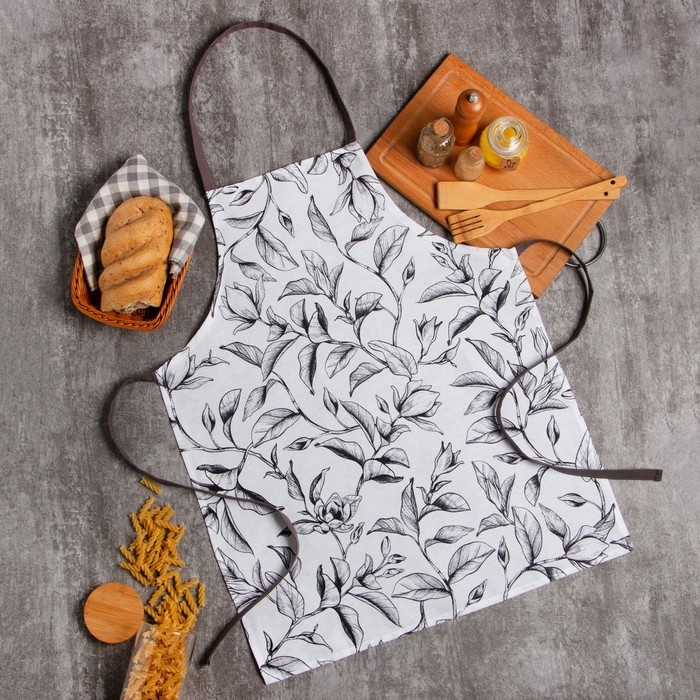 Фартук Доляна Plant leaves 60х70 см, цвет лент - микс, 100% хл, рогожка 164 г/м2