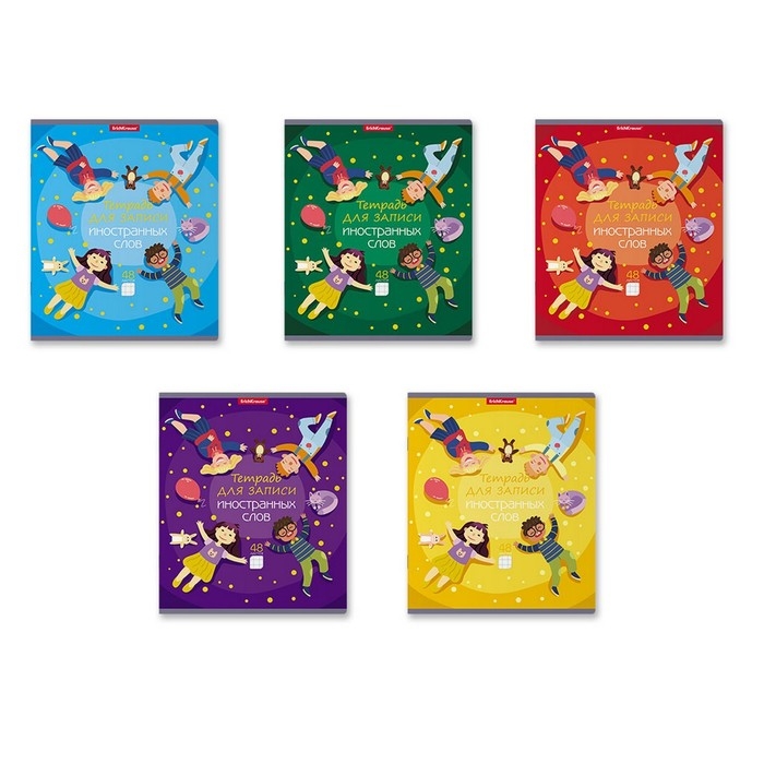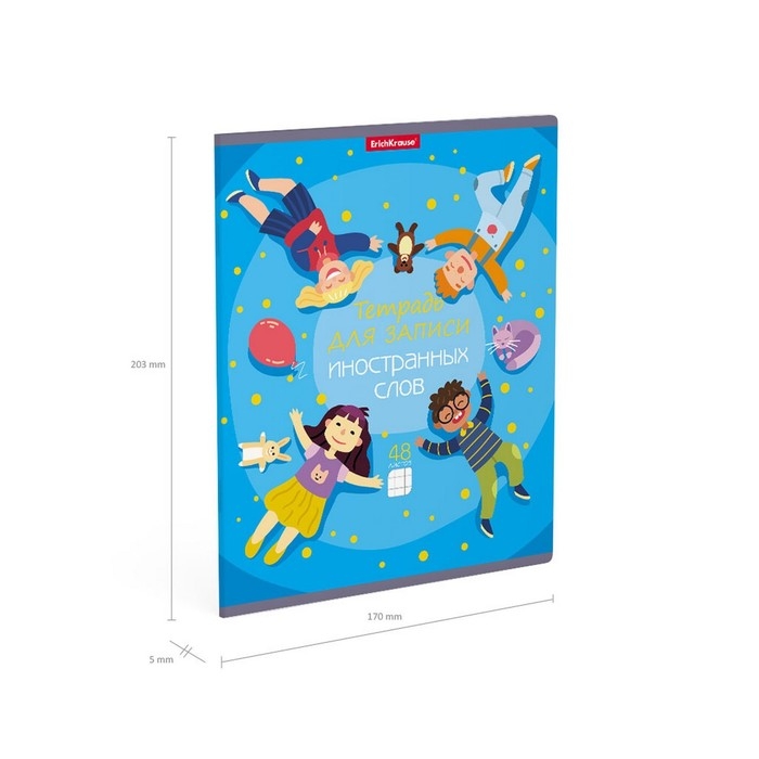 Тетрадь для записи иностранных слов, 48 листов в клетку ErichKrause Friendship, три столбца: слово, транскрипция, перевод, МИКС