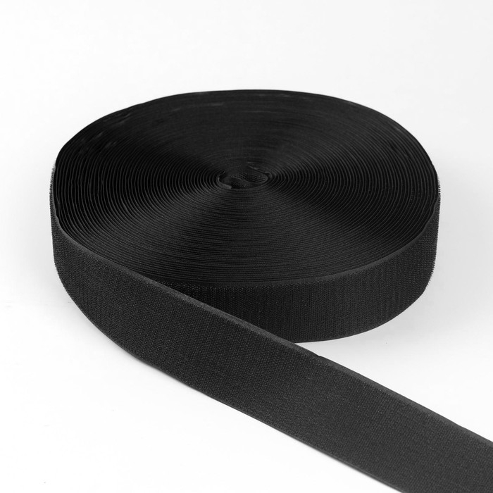 Липучка, 50 мм × 25 ± 1 м, цвет чёрный