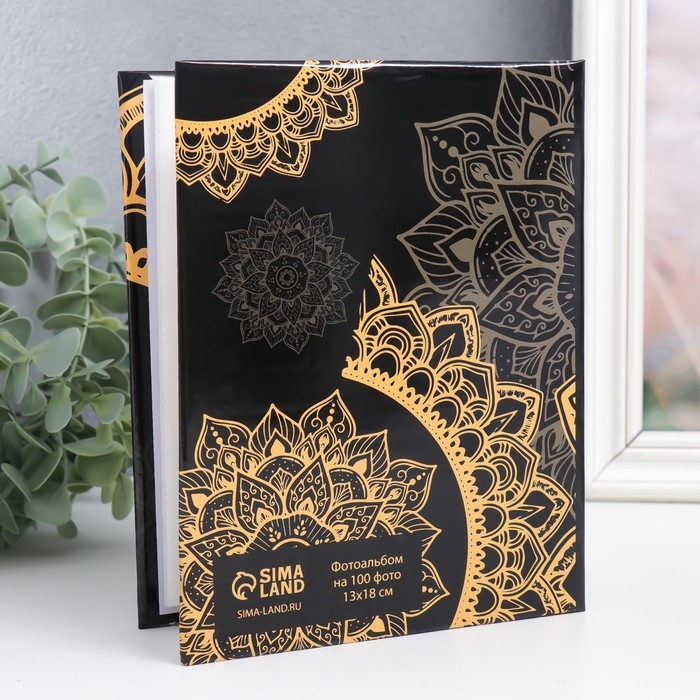 Фотоальбом на 100 фото 13х18 см "Мандала на чёрном" 19,5х15,5х4 см