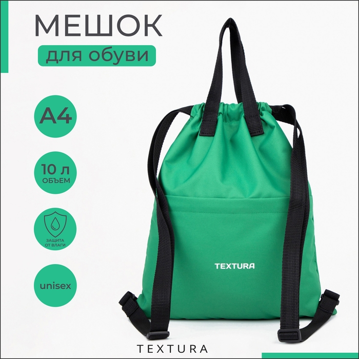 Мешок для обуви на стяжке, наружный карман,TEXTURA, цвет зелёный